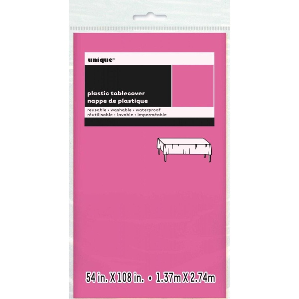 Ubrus plastovýHot pink je vyrobený z jemného plastu, je lehce omyvatelný, voděodolný a je možno ho použít opakovaně.