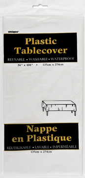 | Jemný plastikový party ubrus lehce omyvatelný, voděodolný, možno použít opakovaně rozměr 137x274 cm |