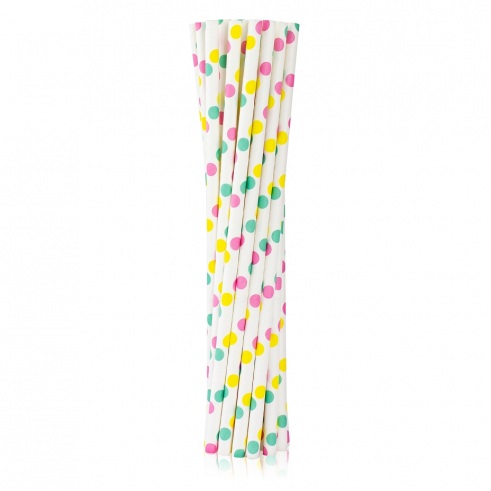Sada EKO bílých papírových brček s barevnými puntíky