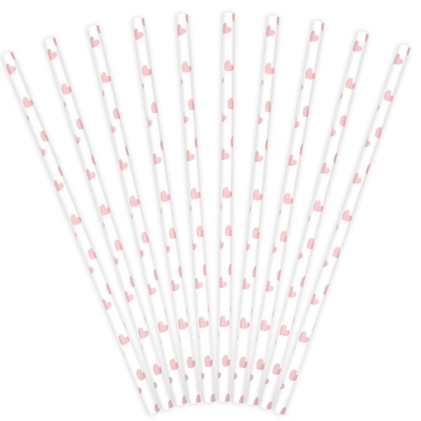 Dejte vašim lahodným nápojům osobitý styl a ponořte do nich tato papírová brčka s něžnými růžovými srdíčky.