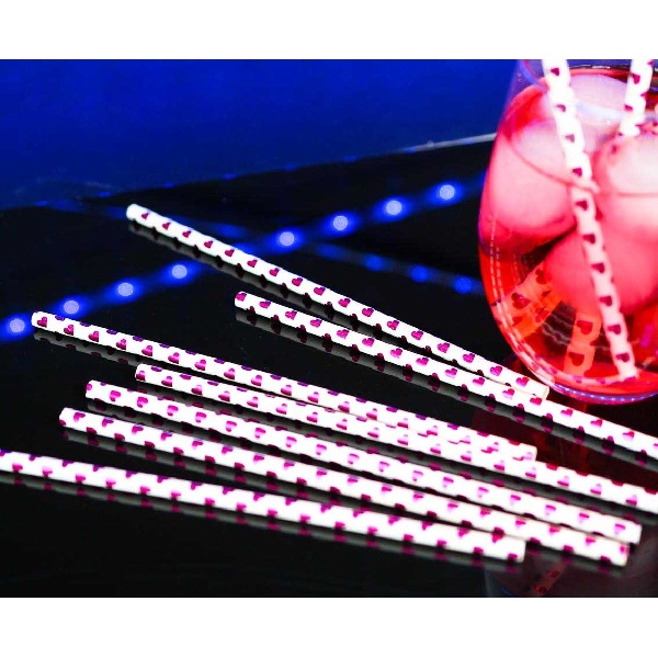 Papírová brčka se srdíčky se skvěle hodí na narozeninovou oslavu, Valentýna, rozlučku se svobodou i na svatební párty.