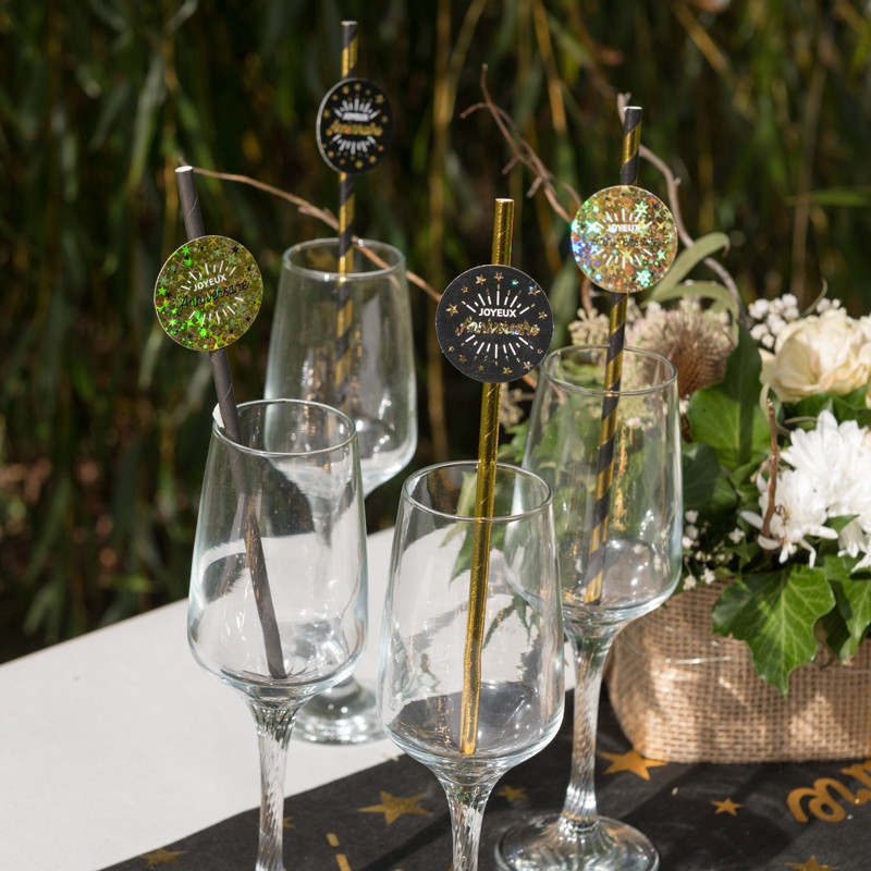 Buďte trendy při výběru doplňků stolování vaší narozeninové oslavy s těmito třpytivými papírovými brčky.