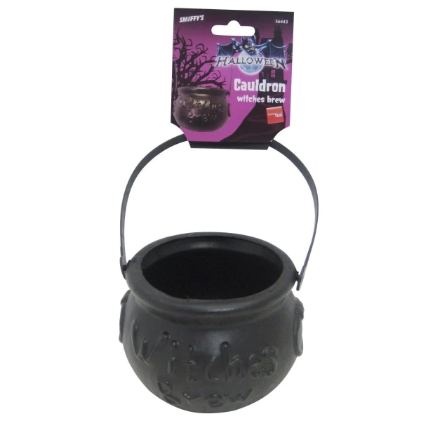 A proto tento malý černý plastový čarodějnický kotlík s rukojetí nesmí chybět na čarodějnické párty jako doplněk výzdoby.