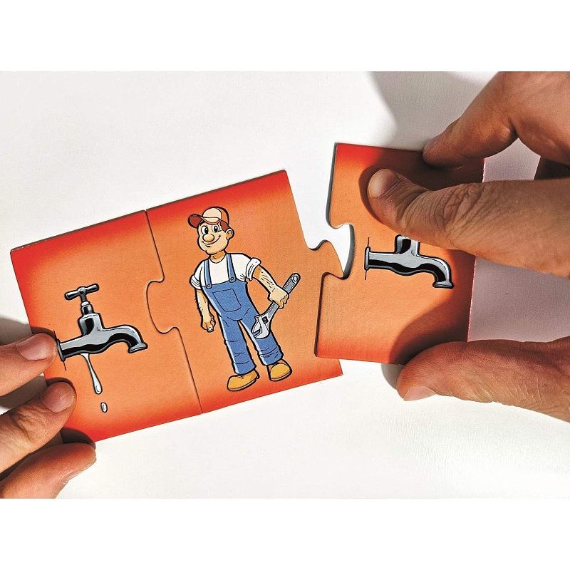 Naučné hraní pro malé zvědavce od 4 let, při kterém poznávají a upevňují znalosti o tom co se děje PŘED a co PO. Každý případ se skládá ze 3 kartiček s vyobrazením události. Dětem při skládání pomáhají tvary dílků.