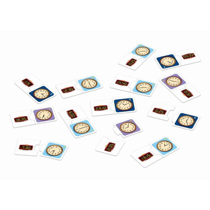 Naučné hraní je vhodné pro děti od 5 let, pomocí níž se děti učí zábavnou formou poznávání hodin tím, že přiřazují kartičky ke správnému času. Tvar dílku puzzle jim napoví to pravé řešení.