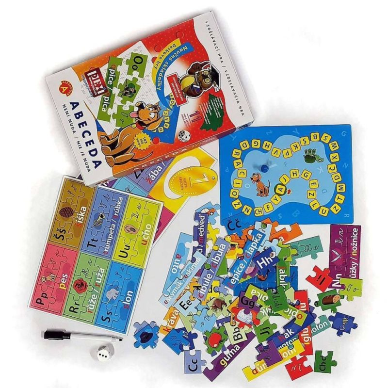 „Abeceda není nuda“ je skvělá zábava a zároveň učební pomůcka pro děti v předškolním věku a prvňáčky. Balení obsahuje 29 sad puzzlí, která znázorňují jednotlivá písmenka abecedy. Každé puzzle se skládá ze čtyř dílků – s obrázkem, s jeho názvem a s odpovídajícími tiskacími a psacími písmenky. Bohaté varianty hry, během nichž je třeba různě uspořádat či vyhledat jednotlivé dílky, pomáhají dětem naučit se abecedu, dále je učí rozpoznávat písmenka a jejich pořadí v abecedě či vyhledávat počáteční písmenka ve slovech a zároveň procvičují paměť a koncentraci.