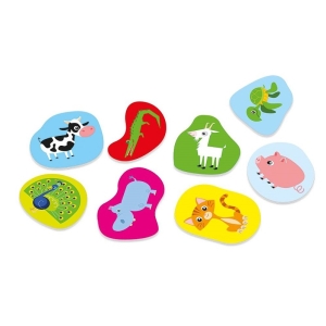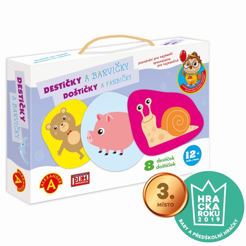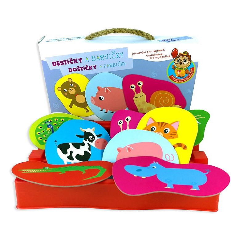 Tato poznávací a naučná hra rozvíjí základní schopnosti a dovednosti batolat od 12. měsíců věku. Rozšiřuje slovní zásobu, pomáhá propojit hmatovou a vizuální paměť a schopnost rozpoznávat nové barvy.