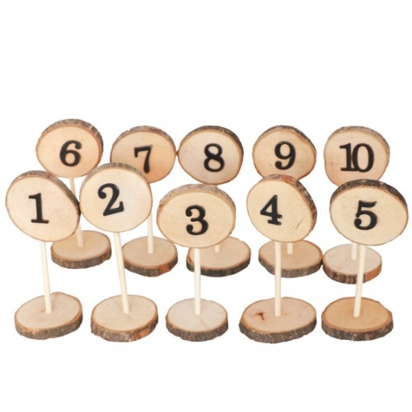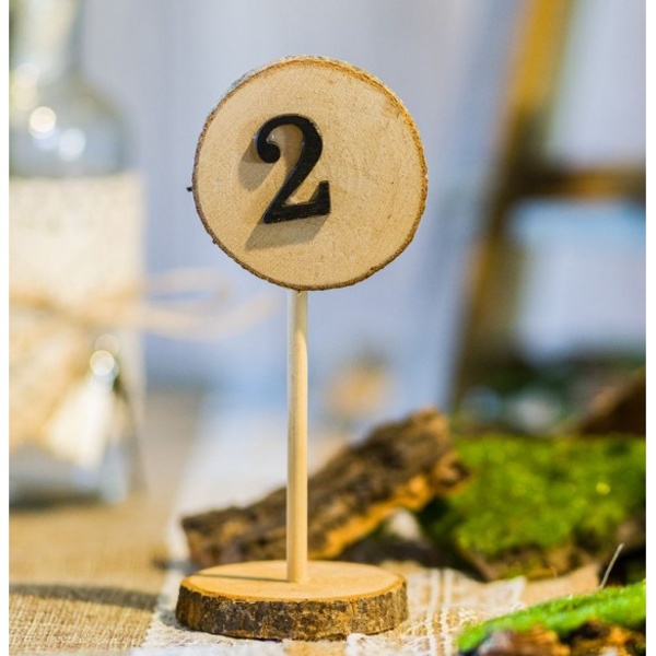 Čísla stolů v dřevěném provedení vám krásně a přírodně pomohou k označení stolů na svatbě a přispějí tak vašim hostům k lepší orientaci, kde je jejich čestné místo u stolu.