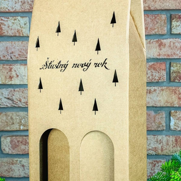 Dvě lahve vína v krabici jsou tak zajímavě a rychle zabalené..Dárková krabice na dvě lahve je vyrobena z kvalitní hladké lepenky, která zaručuje vysokou pevnost. Motiv je vytvořen laserovým výsekem a spolu s okénkem umožňuje průhled do krabice na láhev v ní umístěnou.