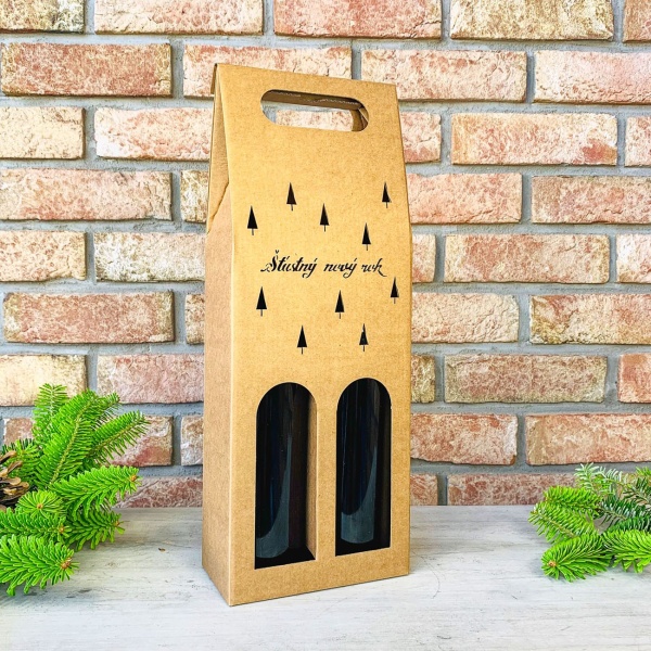 Dárková krabice na dvě lahve vína s nápisem Šťastný Nový rok je vhodným dárkem svým blízkým, přátelům nebo poděkováním obchodním partnerům, zákazníkům.