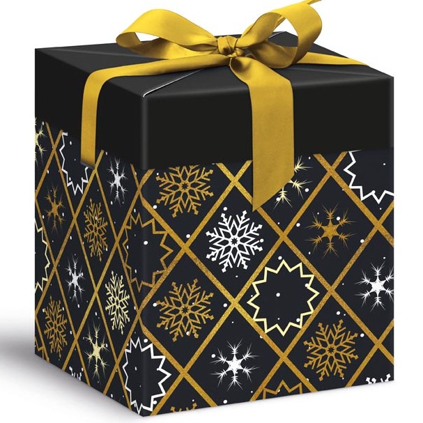 Dárková papírová krabička tmavě modré barvy se sněhovými vločkami