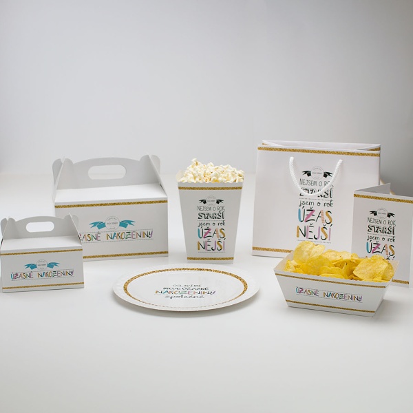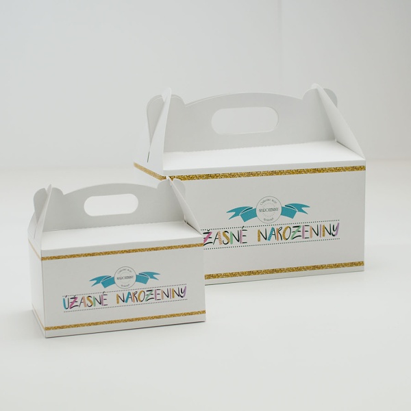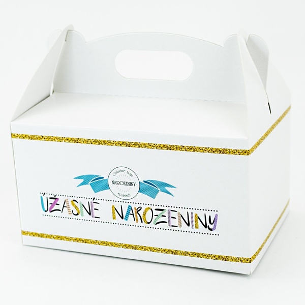Krabička Úžasné narozeniny může sloužit jako obal pro dárek pro oslavence nebo jako obal na výslužku pro vaše narozeninové hosty. Narozeninový vzhled umocní popiska v českém jazyce.