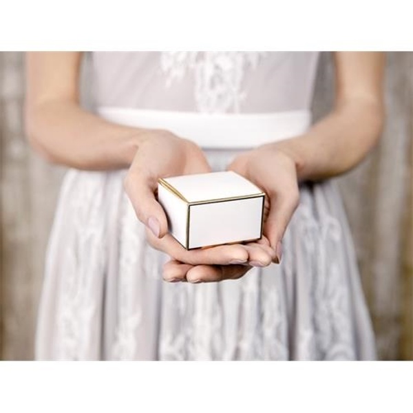Tyto bílé krabičky se zlatým lemováním jsou jsko stvořené pro balení drobných dárků, zejména pro svatební hosty.