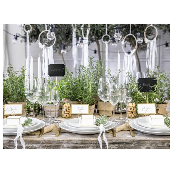 Díky jejich bílé barvě se zlatým lemováním se hodí k jakémukoliv dekoru. Jsou vyrobeny z kvalitního pevného papíru.