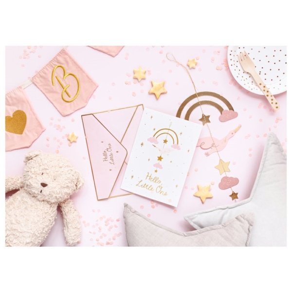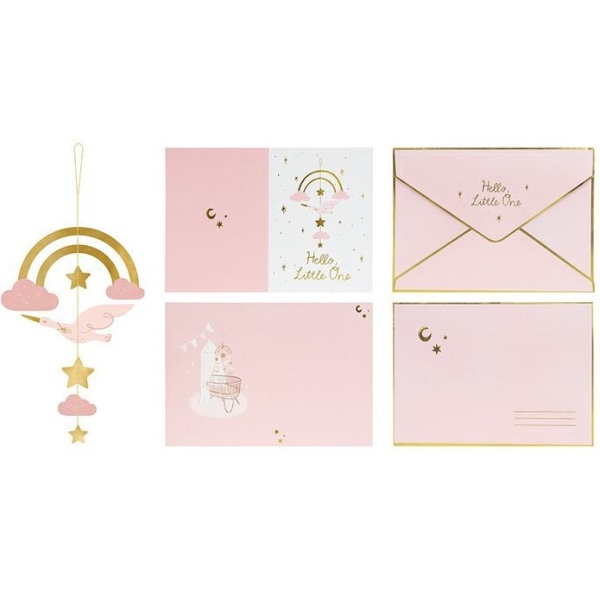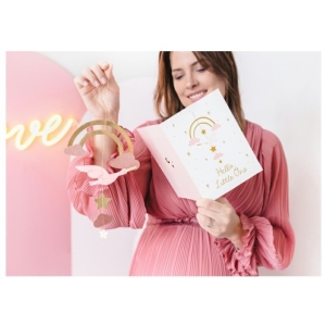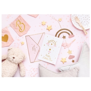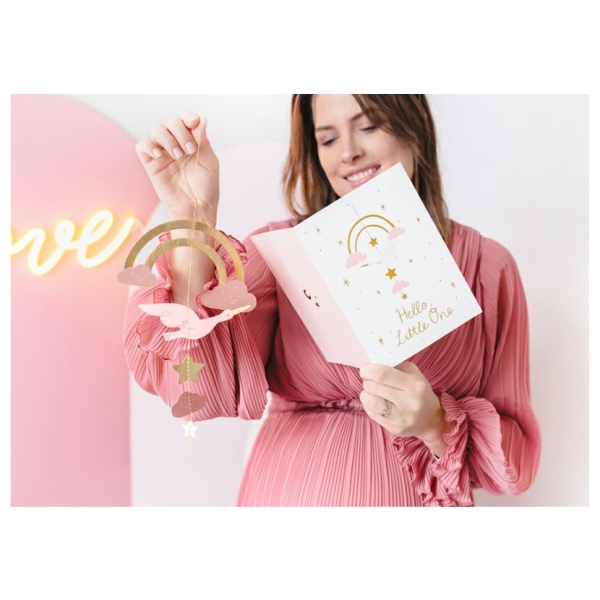 Papírové blahopřání se závěsnou dekorací k narození holčičky.