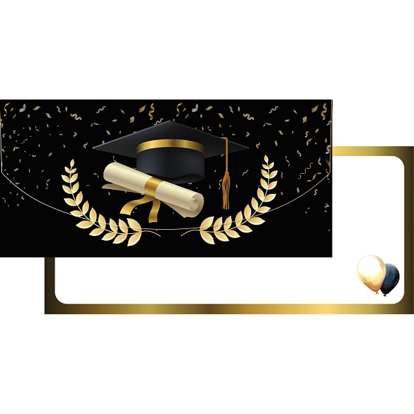 Dárková obálka s potiskem promoční čepice a blahopřání je praktický pomocník pro dárek svým blízkým k dokončení studia na vysoké škole v podobě peněz, darovacího poukazu, voucheru prostě všeho, co lze vložit do obálky.