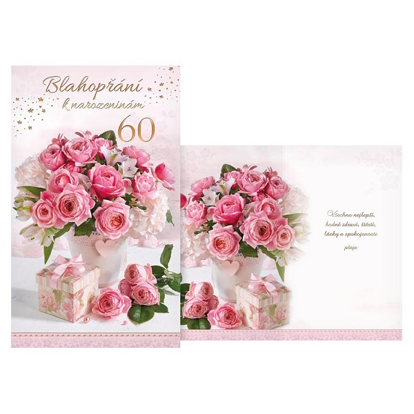 Přání k jubilejním 60. narozeninám s krásným květinovým motivem.