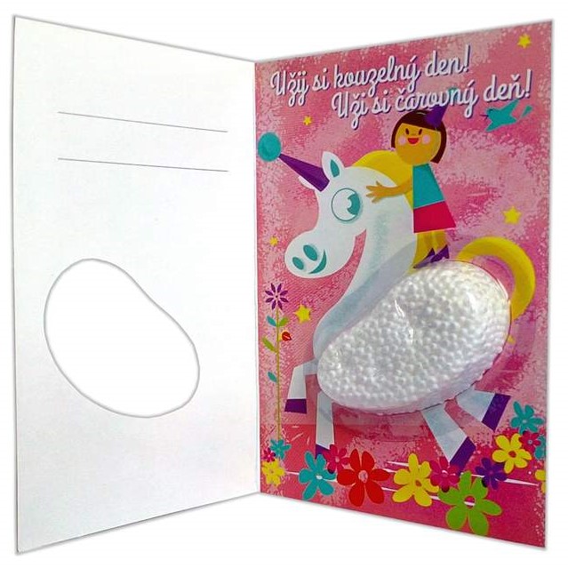 Přáníčko s modelínou PlayFoam Jednorožec, Šťastné narozeniny, je veselé, barevné blahopřání k narozeninám a kreativní dárek v jednom. V přáníčku je přiložená oblíbená pastelína.