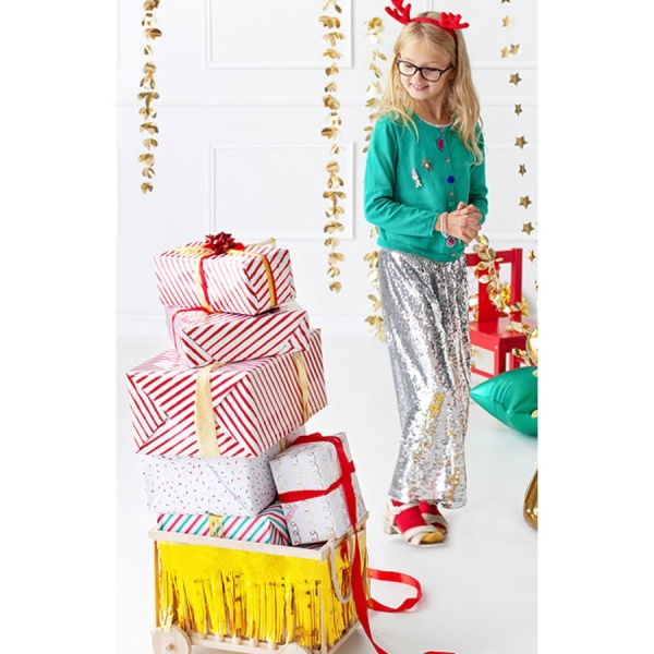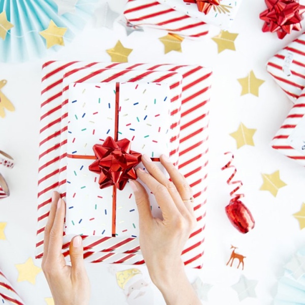 Balící papír v bílé barvě s červenými proužky vypadá velmi slavnostně a usnadní vám rychlé a hezké zabalení jak narozeninového dárku, ale také vánočního.