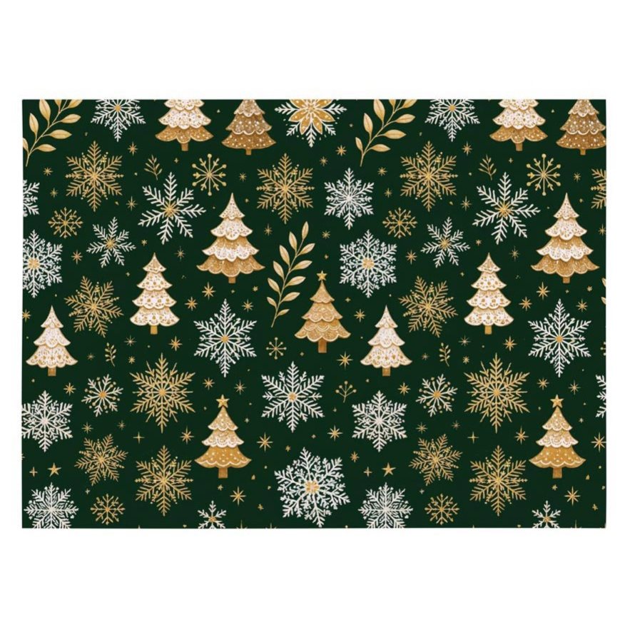 Kombinace zlatých a bílých vloček, zdobených vánočních stromečků a jemných lístků na tmavě zeleném podkladu vytváří luxusní a zároveň tradiční vzhled. Kvalitní papír se snadno skládá a netrhá, takže s ním zabalíte každý dárek rychle a bez starostí.