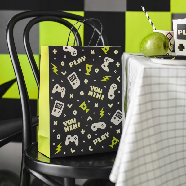 Dárková taška Gamepads je pohodlný a rychlý způsob, jak zabalit dárek oslavenci na tématické herní párty.