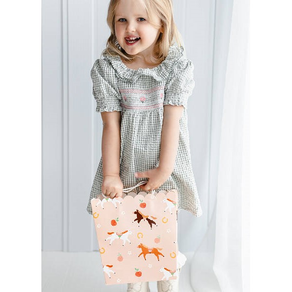 Dárkové taštičky papírové v pudrově růžové barvě s barevným potiskem Koní