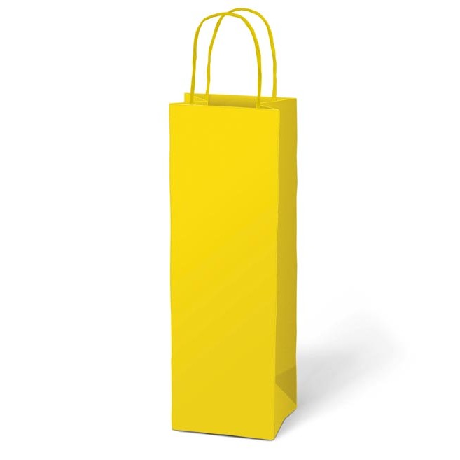Papírová dárková taška je vhodná na víno nebo jinou lahev ve žluté barvě.