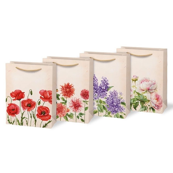 Kvalitní dárkové tašky v mixu květinových motivů potěší stejně, jako jejich obsah.