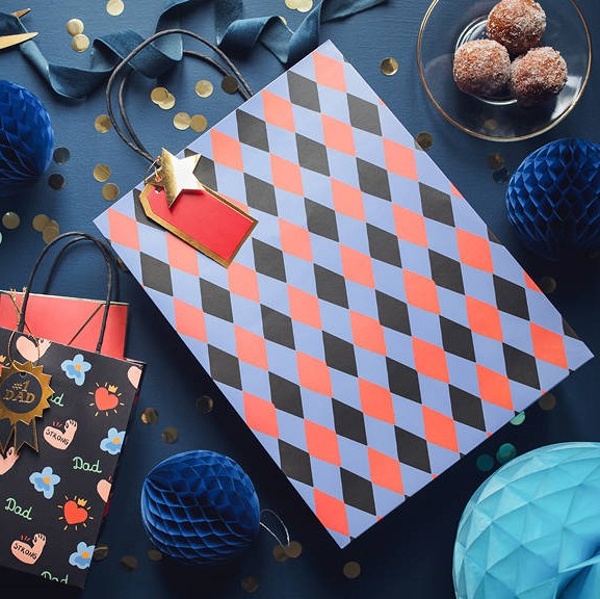 Pokud ještě hledáte elegantní a stylovou dárkovou tašku ke Dni otců, pak je tato krásná dárková taška s kosočtverci je pro tento den jako stvořená.