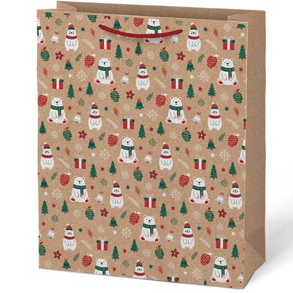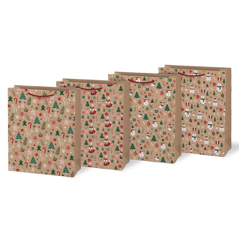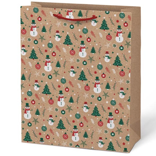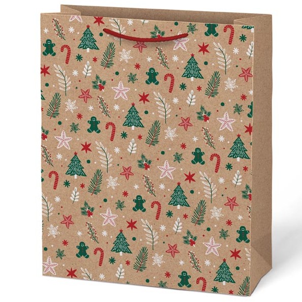 Tato pevná a stylová kraftová taška je ideální pro rychlé a vkusné balení vánočních dárků. Vyniká nejen svou praktickou velikostí, ale také unikátním přírodním vzhledem, který v kombinaci s barevnými vánočními motivy působí útulně, moderně a zároveň ekologicky.