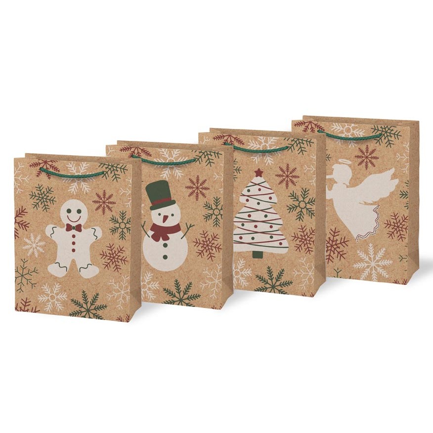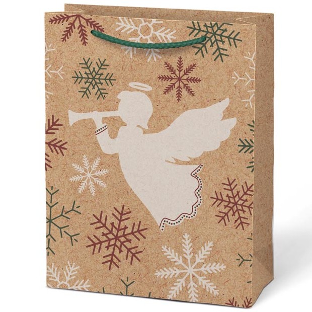 Papírová pevná a stylová kraftová taška je ideální pro rychlé a vkusné balení vánočních dárků.