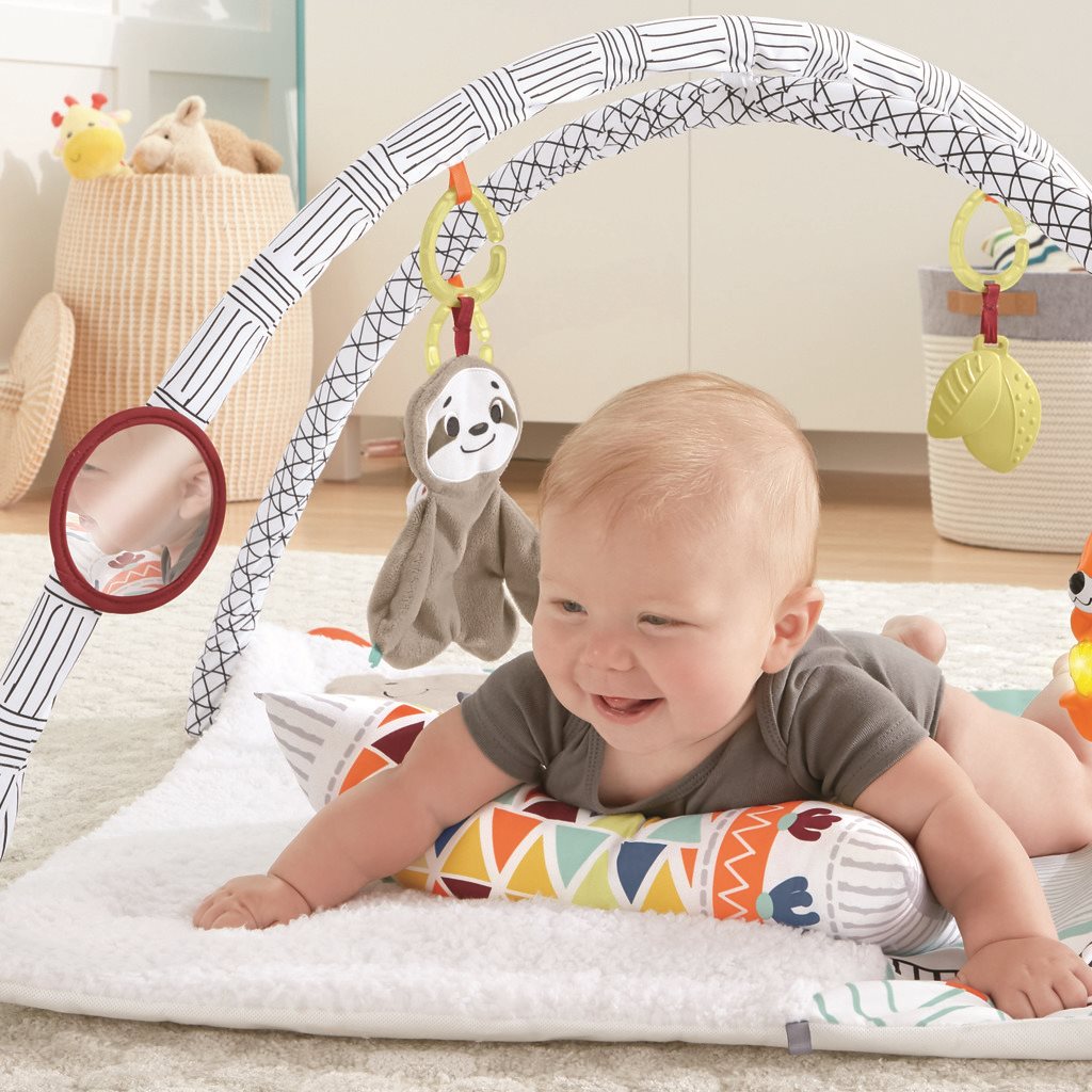 - Potěšte všech pět smyslů vašeho děťátka zábavnou hrací dečkou od Fisher-Price. Váš malý badatel či badatelka může kdykoliv vyrazit s dečkou, která dokáže plně zaměstnat jeho smysly, na dobrodružství. Její součástí je také díl určený na pasení koníčků. Děťátko může na této luxusní hrací dečce objevovat světýlka a zvuky přátelské vydry, kousátko ve tvaru lístečku, plyšového lenochoda, voňavý mrak a mnoho dalšího. Dokonce zde naleznete rozkládací mini album na fotky. Zvířecí kamarádi povzbuzují vaše děťátko, aby se k nim natáhlo a prozkoumalo je a tím posilovalo svou hrubou motoriku. Vkládání kousátka do úst a jemné úchopy pomáhají v rozvoji jemné motoriky a obratnosti.