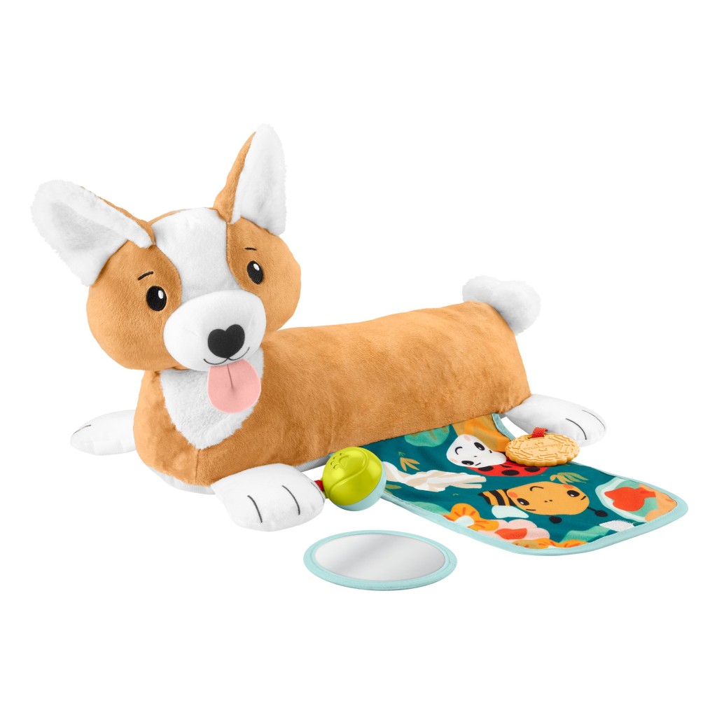- Plyšová hračka Polštářek pod bříško pejsek od Fisher-Price® podporuje vaše děťátko při hře na bříšku a rozvíjí jeho fantazii. Tři hračky včetně kousátka, chrasticího míčku a zrcátka pro sebepoznávání zajistí zábavné chvilky.