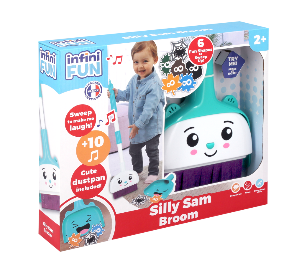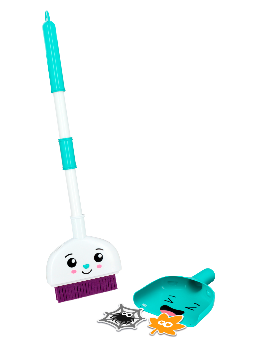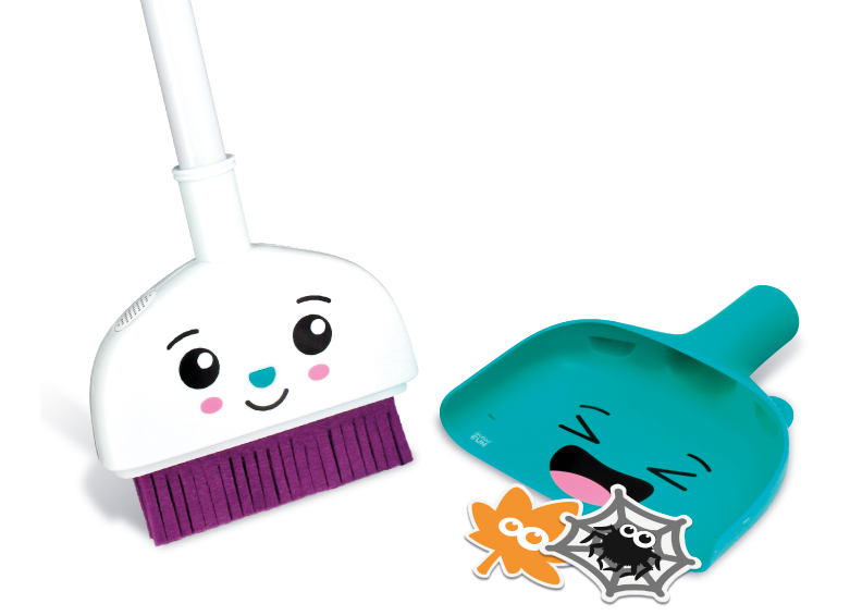 - Uklízecí sada ve veselém designu pro malé pomocníky. Set s 10 zábavnými zvuky. Stiskni nos a bude se smát! Zametej, aby se rozesmál! Balení obsahuje smetáček a lopatičku. Uklízecí sada vyžaduje 2× AAA (R03) 1,5V baterie, které jsou součástí balení.