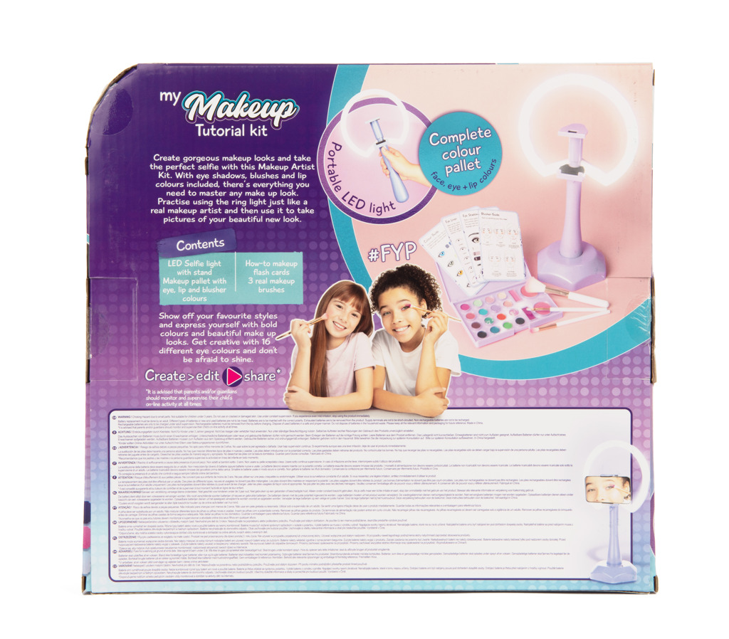- Make up výuková sada Love and Hugs slouží k tomu abyste se naučily líčit jako kosmetičky. Vytvoř si nádherný make up pomocí této sady, a udělej si selfie, použij k tomu kruhové LED světlo pro reálnější efekt. Sada obsahuje 3 profi štětce na líčení, paletu 16 očních stínu, včetně 2 rtěnek a 2 zdravíček a kartičky s návody na líčení.