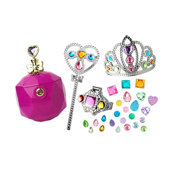 - Šperky pro princezny s kouzelnou šperkovnicí – vytvořte si vlastní šperky pomocí kouzelných kamenů. Pomocí kouzelného klíče ukrytého na vrchu šperkovnice odemkněte šperkovnice, nalijte do ní vodu a vhoďte kameny a počkejte až se Vám objeví drahé kameny, které poté vložce do čelenky. Šperkovnice i tajná komora v náramku jsou uzamykatelné. Balení obsahuje – 1 Kouzelná šperkovnice (s klíčem), 12 kamenů, které se promění ve 24 drahokamů 1 Diadém,1 Kouzelná hůlka a 1 náramek (který se zamyká).