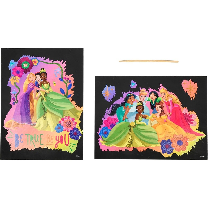 Tyto úžasné kartičky mají ve skutečnosti spoustu barev, jen je ještě nevidíte. Musíte seškrábnout černou vrstvu na kartách. Už vidíte ty krásné barvy Disney princezen?