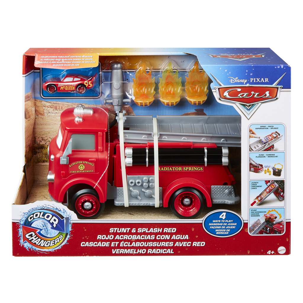 - V červeném herním setu Color Changers se auta přeměňují jako kouzlem a s tímto nadrozměrným hasičským vozem Stunt and Splash Red budou mít děti všechny nové možnosti hraní se super cool technologií Color Changer. Čeká vás stříkání, namáčení, vystřelování a kaskadérství. Naplňte Redovu nádrž na vodu studenou vodou a nádrž s ohnivým kruhem teplou vodou. Zvládne Blesk McQueen proskočit ohnivý kruh nebo přistane do nádrže, která ho změní z modré na červenou? Pokud skončí v nádrži, několik postřiků z Redovy hadice změní barvu Bleska zpět na původní modrou barvu – to je pecka! Sada obsahuje jedno exkluzivní auto pro změnu barvy Blesk McQueen. Skvělý dárek pro fanoušky filmu Auta od 4 let. Barvy a vzhled výrobku se mohou lišit.