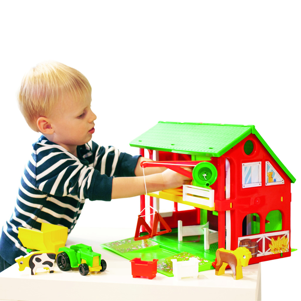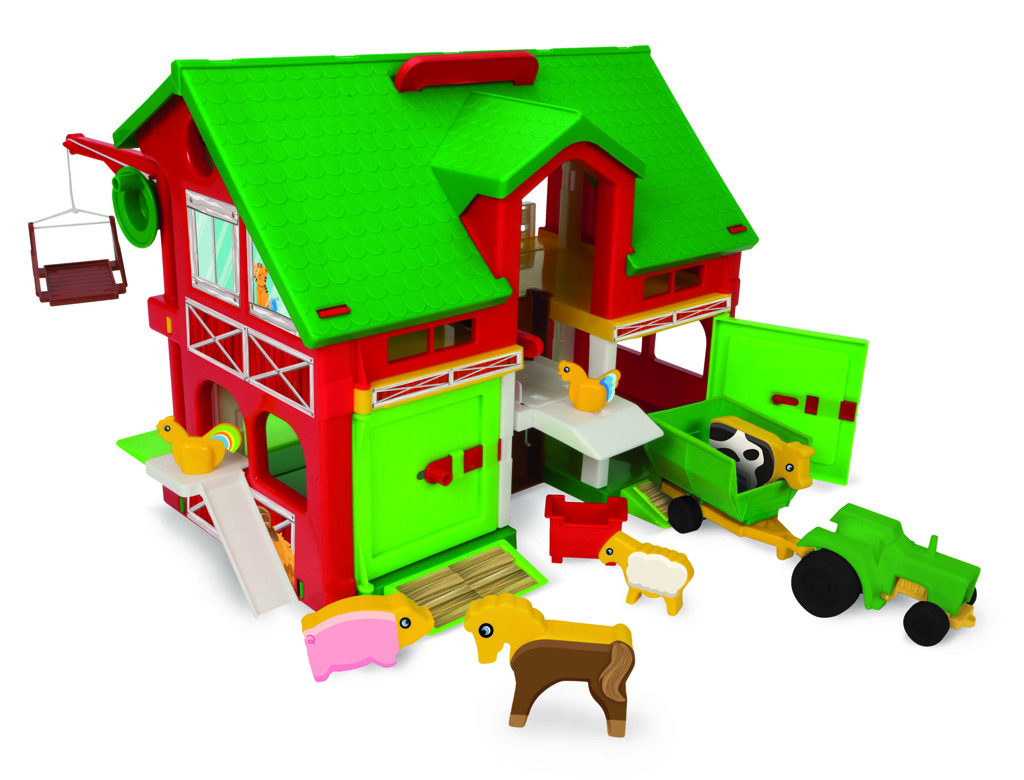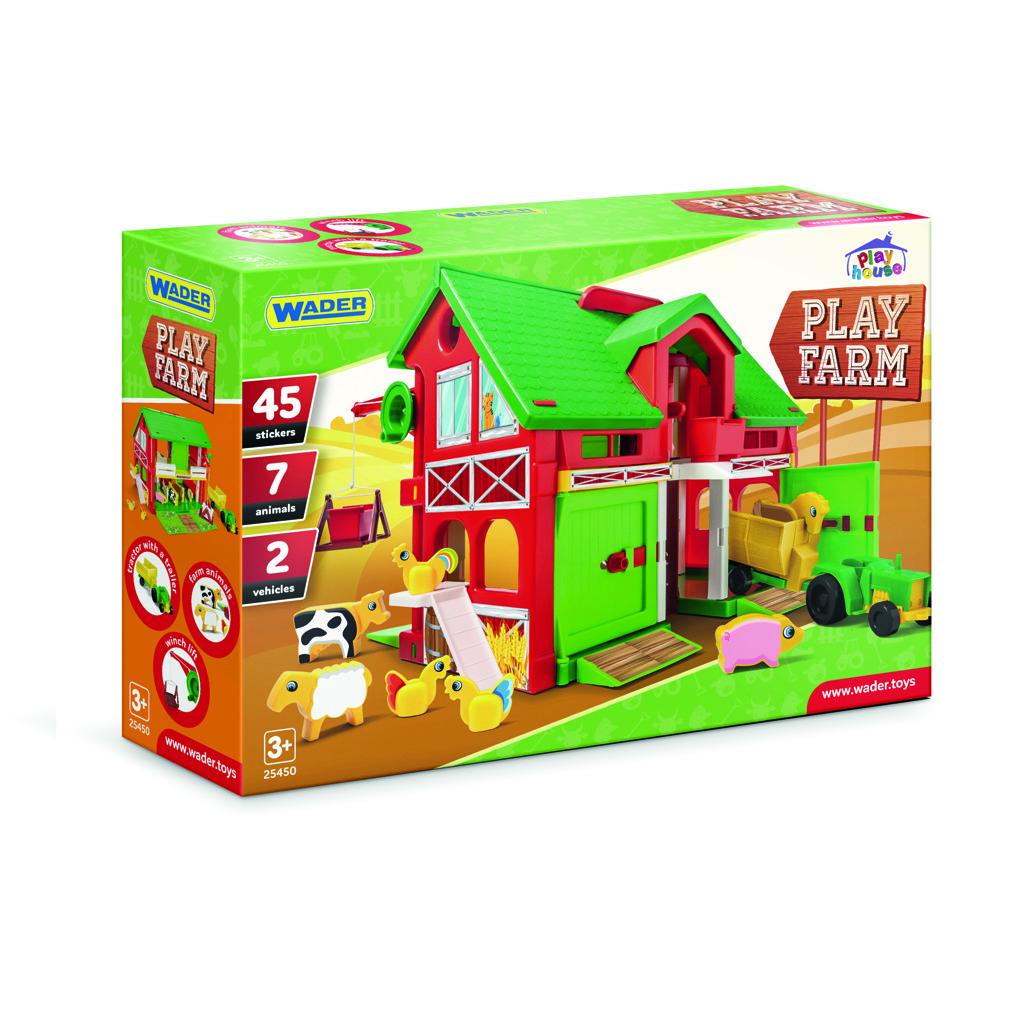 - Farmářský set Wader 25450 Barevná farma pro opravdové farmáře. Na farmě je opravdu živo, malí farmáři mohou chovat : slepice, koníka, ovečku, prasátko a kravičku. Na farmě jsou i stroje pro práci na poli pro opravdové farmáře. Součástí balení je i traktor s valníkem. Na farmě můžete pomocí výtahu uklízet balíky sena, slepičky mají vlez do kurníku po žebříku, koník a kravička svoji stáj, prasátko svůj chlívek. Farma se dá celá uzavřít a přenášet nebo vzít s sebou na cesty.