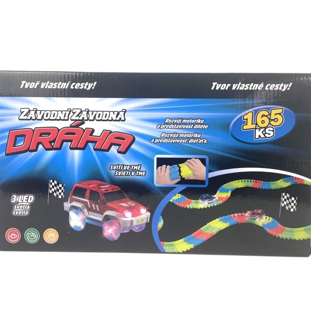 Svítící automobilová závodní dráha s LED autíčkem