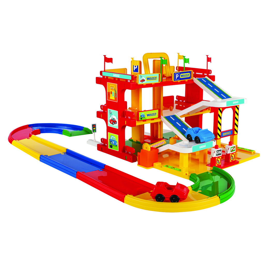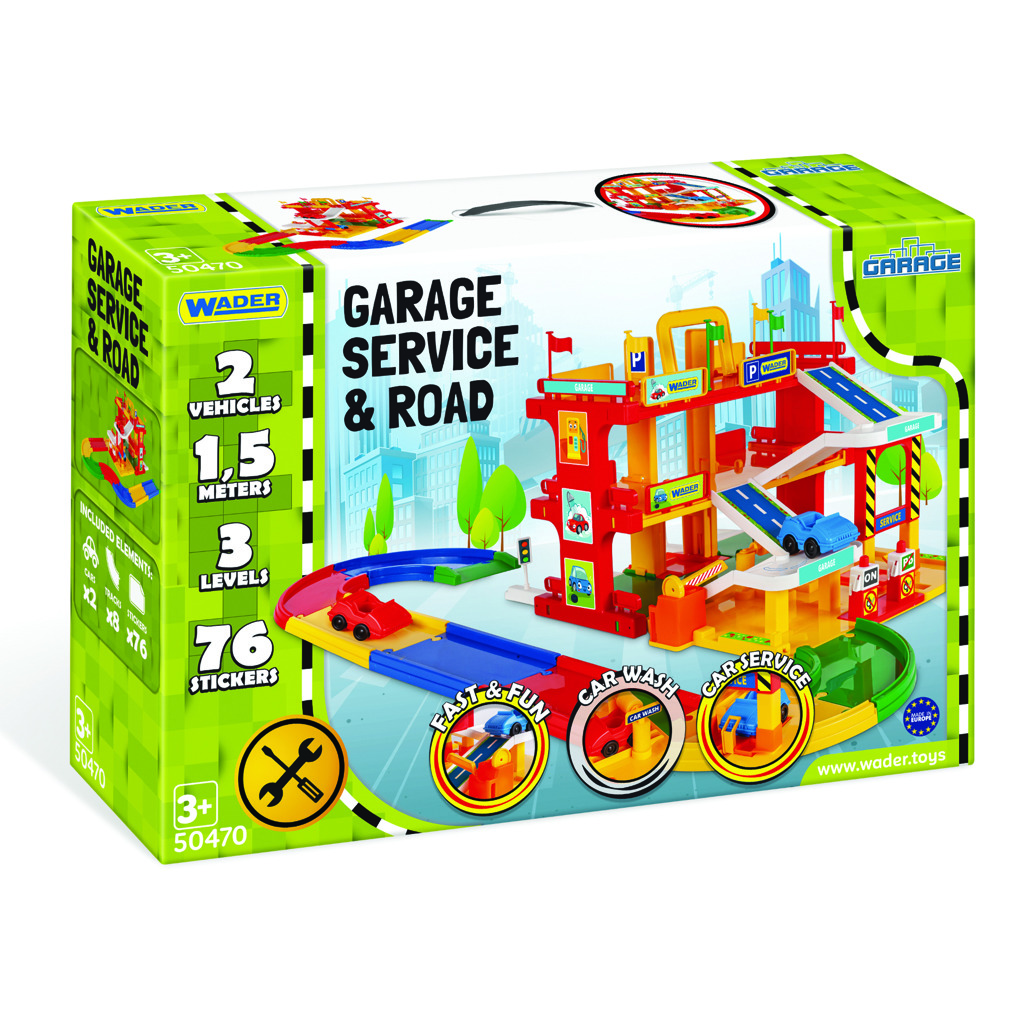 - Moderní, realisticky řešená garáž je vybavena výtahem, který přepravuje auta na jedné ze tří úrovní, rampou, myčkou, distributorem paliva, autoservisem, četnými dekoracemi, 2 auty a 3 metry dlouhým silničním systémem. Velkou výhodou je barevná, lehká a snadno instalovatelná konstrukce.Všechny prvky jsou vyrobeny z vysoce kvalitního, pro děti bezpečného a odolného materiálu, díky kterému si všechny díly zachovávají svůj tvar a barvu po mnoho let. Sestava se skládá z vícebarevných, snadno instalovatelných prvků, které vytvářejí vícepatrovou garáž o výšce 36 cm a vnější vjezdovou trasu do garáže o délce 3 m. Sada obsahuje: výtah přepravující auta do libovolné úrovně, rampu, myčku aut, distributor paliva, autoservis, četné dekorace, 2 auta a samolepky.