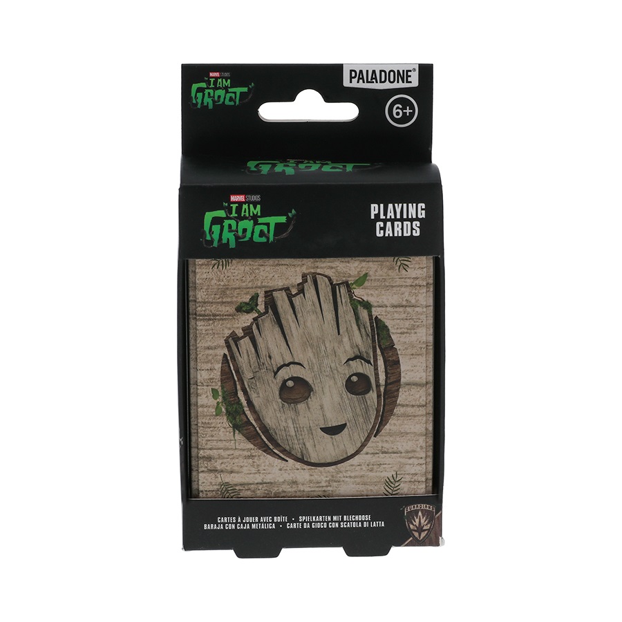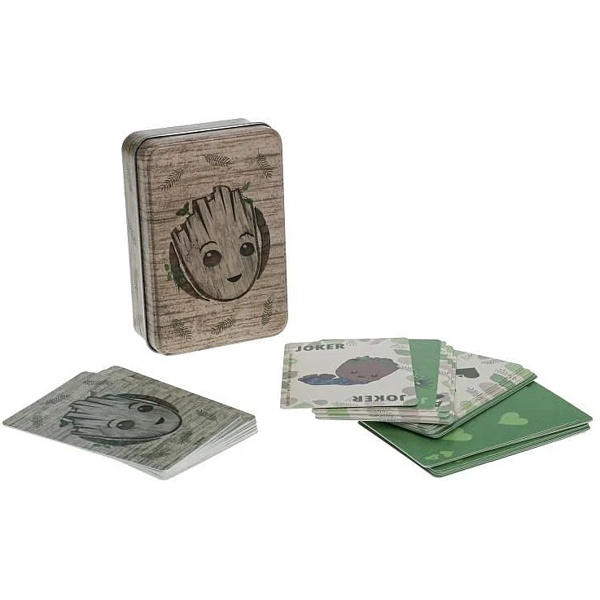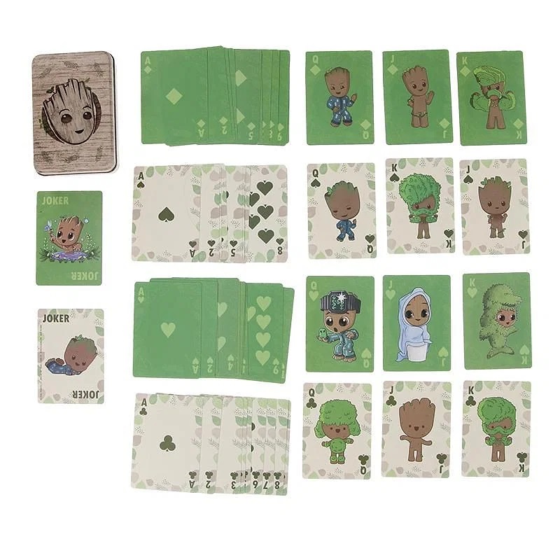 Balení obsahuje 52 hracích karet a dva žolíky. Karty mají potištěnou zadní stranu ikonickým motivem Groota.