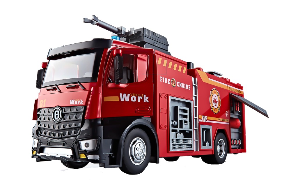 | Kovové auto hasičů se zvukovým a světelným efektem, otvíratelné dveře, auto je na setrvačník. Rozměry: 15 cm × 37 cm × 11 … |