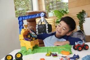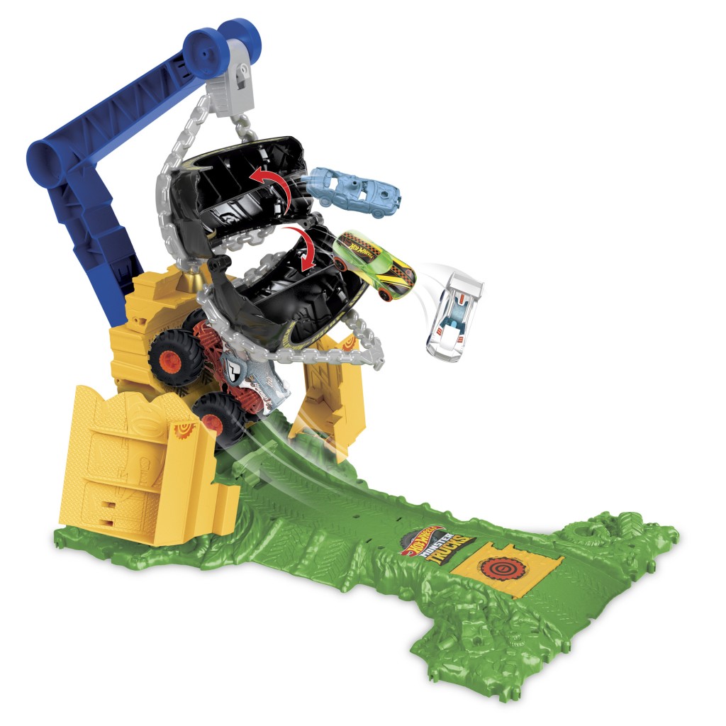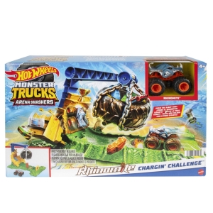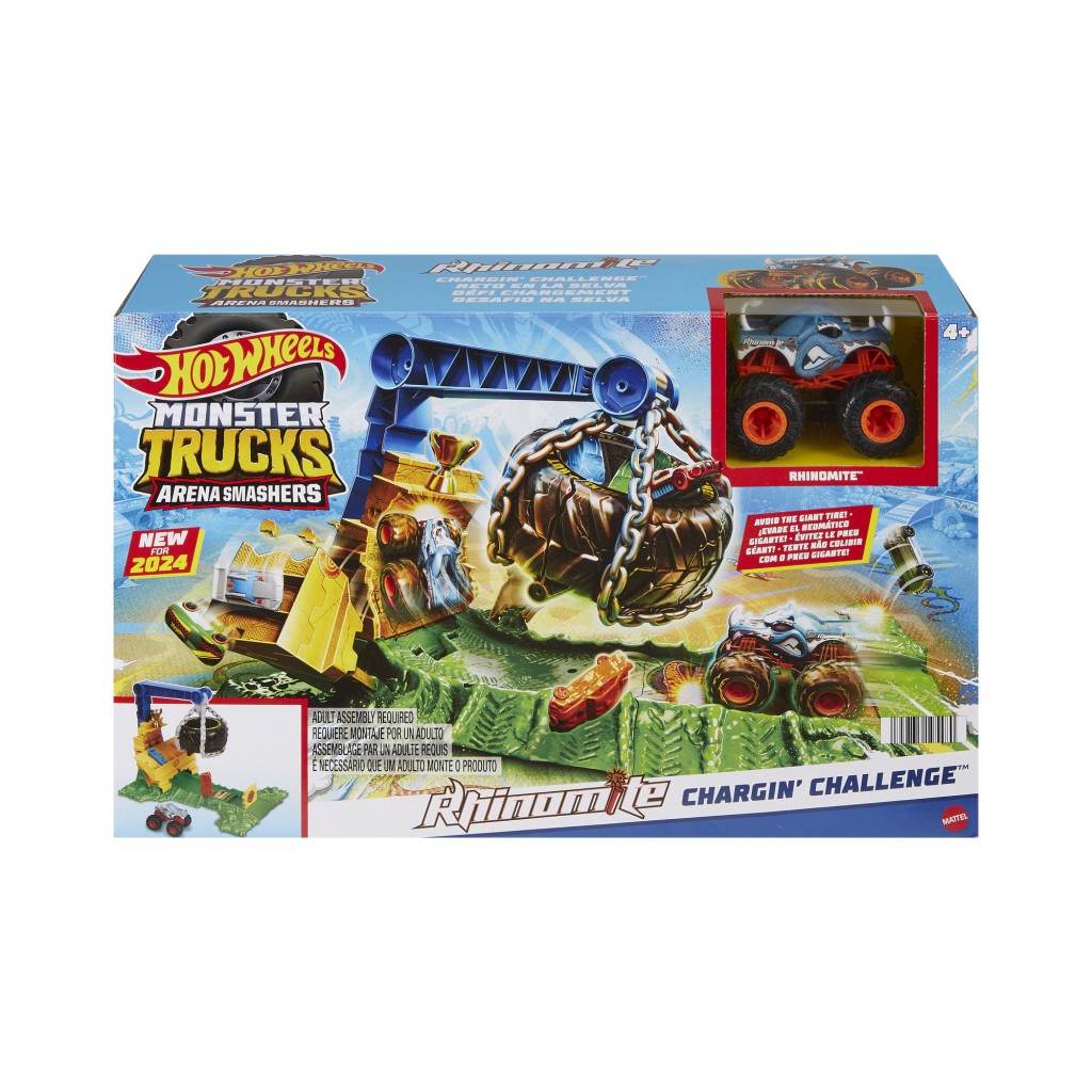 - V setu Hot Wheels® Monster Trucks Aréna: Výzva pro Rhinomita mohou děti s přiloženým Monster Truckem Rhinomite prorážet rozebíratelné stěny a získat tak trofej pro vítěze. Dávejte si pozor: nenechte se rozbít obří pneumatikou, která se vznáší nad vámi! Barvy a provedení se mohou lišit.