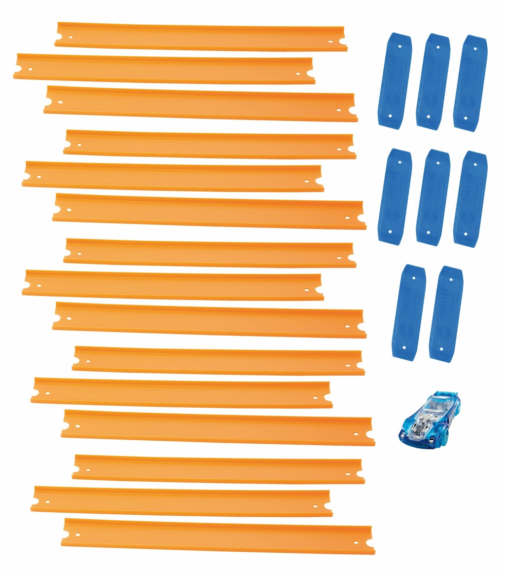 - Tato ohromná Hot Wheels trať měří více než 4,5 metru a je první svého druhu! Součástí balení je jedno autíčko Hot Wheels, díky kterému může hra ihned začít. Balení obsahuje 12 kusů 23cm dílů, 6 kusů 3cm dílů a 18 traťových konektorů. Pošli své autíčko Hot Wheels na dráhu a sleduj, jak uhání vpřed. Nebo otestuj rychlost dalších autíček ze své kolekce a zjisti, které z nich je připravené vyhrát závod. Připoj dráhu k dalším závodním drahám od Hot Wheels a zažij ještě více strhujících kaskadérských kousků a zábavy!