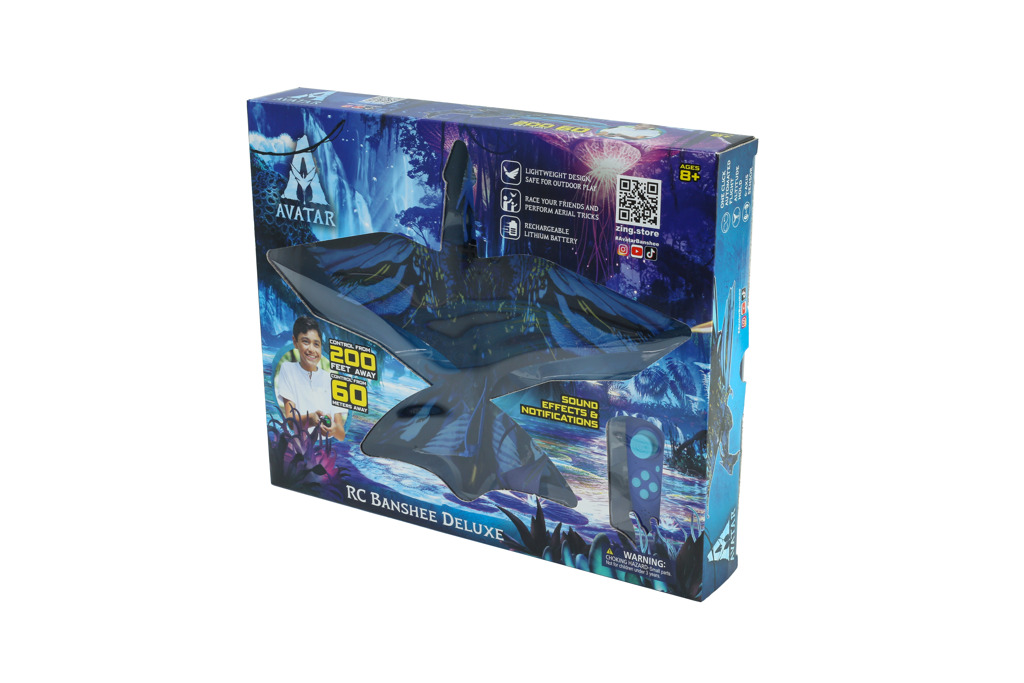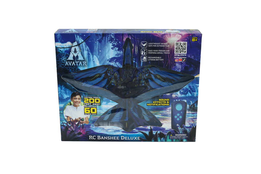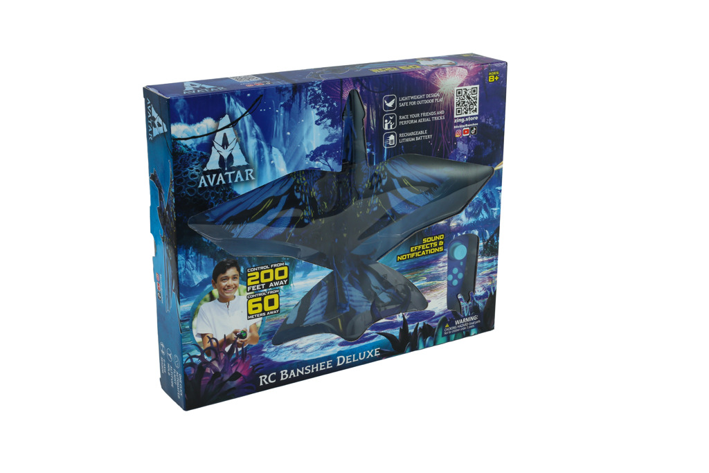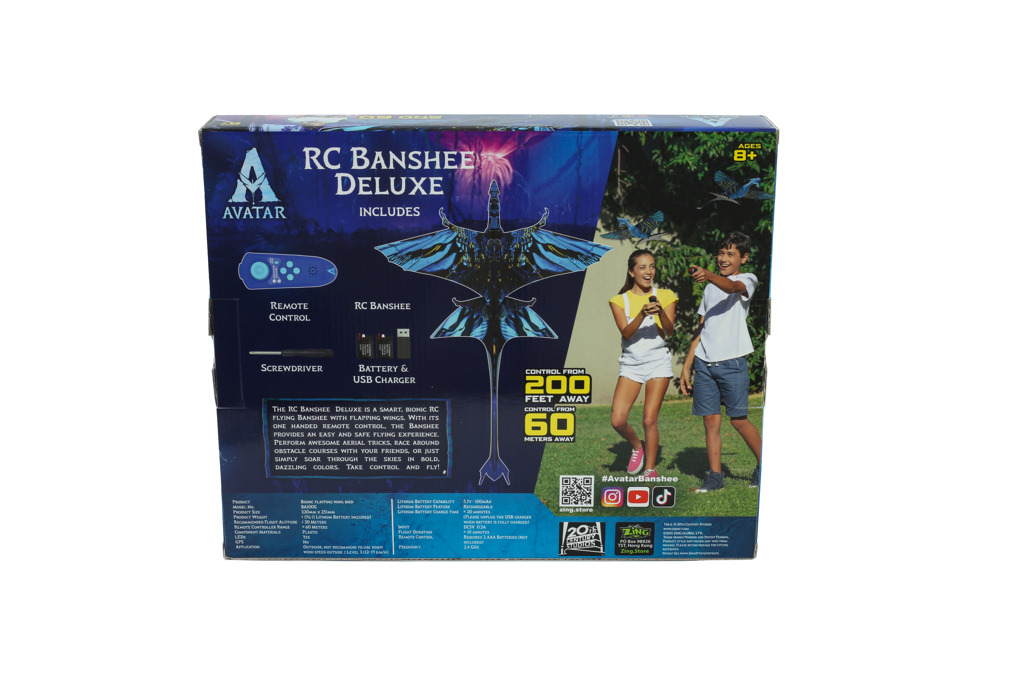 - Létající tvor z filmu Avatar, který umí třepotat křídly a je na dálkové ovládání, které má dosah až 60 metrů. Tvor dokáže různé letecké triky, má na sobě 6 senzorů a funkci automatického letu. Tento výrobek je vhodný pro hru venku. RC výrobek je chytré, bionické létající Banshee s mávajícími křídly. Díky jednoručnímu dálkovému ovládání poskytuje výrobek snadné a bezpečné létání. Předváděj úžasné vzdušné triky, závoďte se svými přáteli na překážkových drahách, nebo se jednoduše vznášejte po obloze v odvážných oslnivých barvách. Převezmi kontrolu a letět. Výrobek je z lehkého materiálu a bezpečný pro hru venku. Udělej si s přáteli závody a vyzkoušejte všechny triky. Frekvence 2,4GHz. Doba nabíjení 60 min., doba létání 10 min.