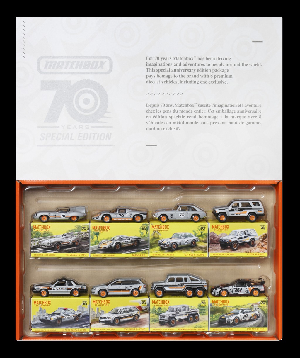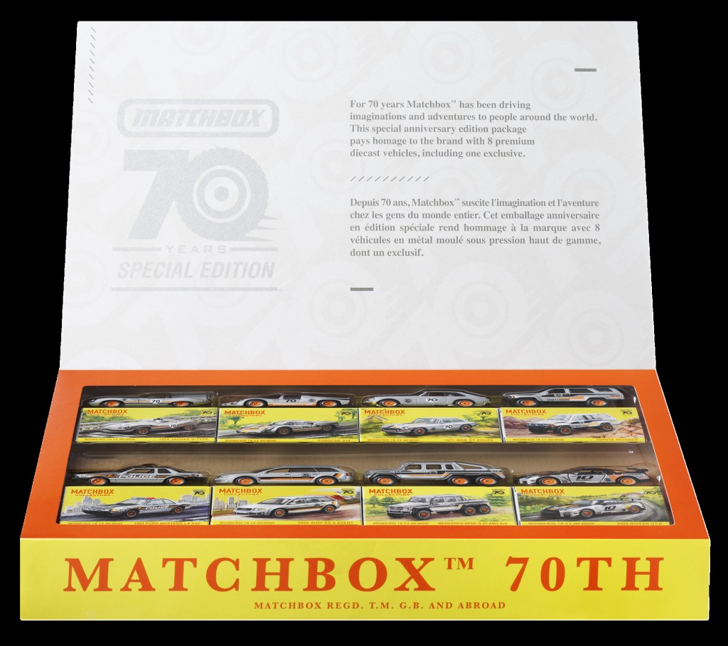 - Oslavte 70. výročí značky Matchbox™ se sadou 7 ks angličáků, které mají speciální platinovou povrchovou úpravu! Sběratelé si zamilují detaily, které zahrnují kovovou konstrukci a gumové pneumatiky „True Grip“. Barvy a vzhled výrobku se mohou lišit.