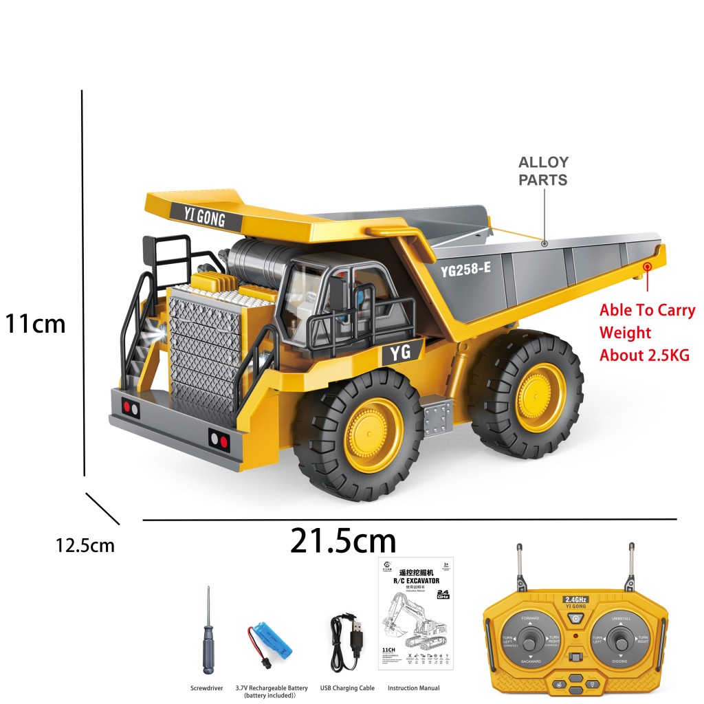 - RC nákladní auto 1:24 se pohybuje doleva, doprava, dopředu a dozadu, funkce vykládání a nakládání. Přední světla svítí. Maximální rychlost 10km/h. Frekvence 2,4G, maximální radiofrekvenční výkon 1mW, dosah dálkového ovládání 30 m.