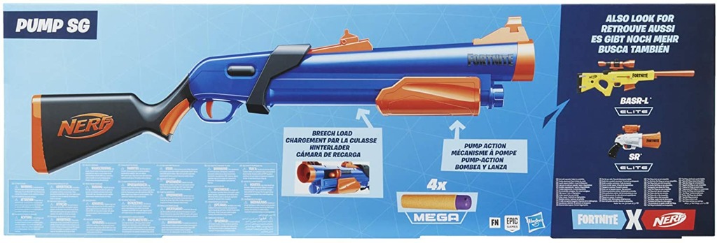 - Blástr Nerf Fortnite Pump SG je inspirovaný blástrem z populární videohry Fortnite. Nabijte posunem předpažbí, zatáhnutím za rukojeť otevřete závěr na boku blástru a vložte do blástru 1 šipku Nerf Mega. Zavřete závěr zatlačením na rukojeť a vystřelte obrovskou šipku Nerf Mega po protivníkovi. Balení obsahuje 4 šipky Nerf Mega.