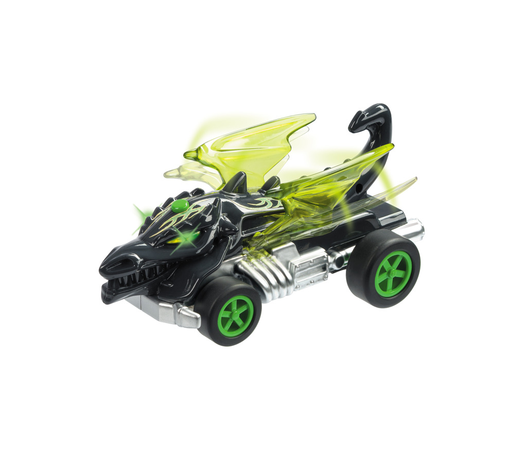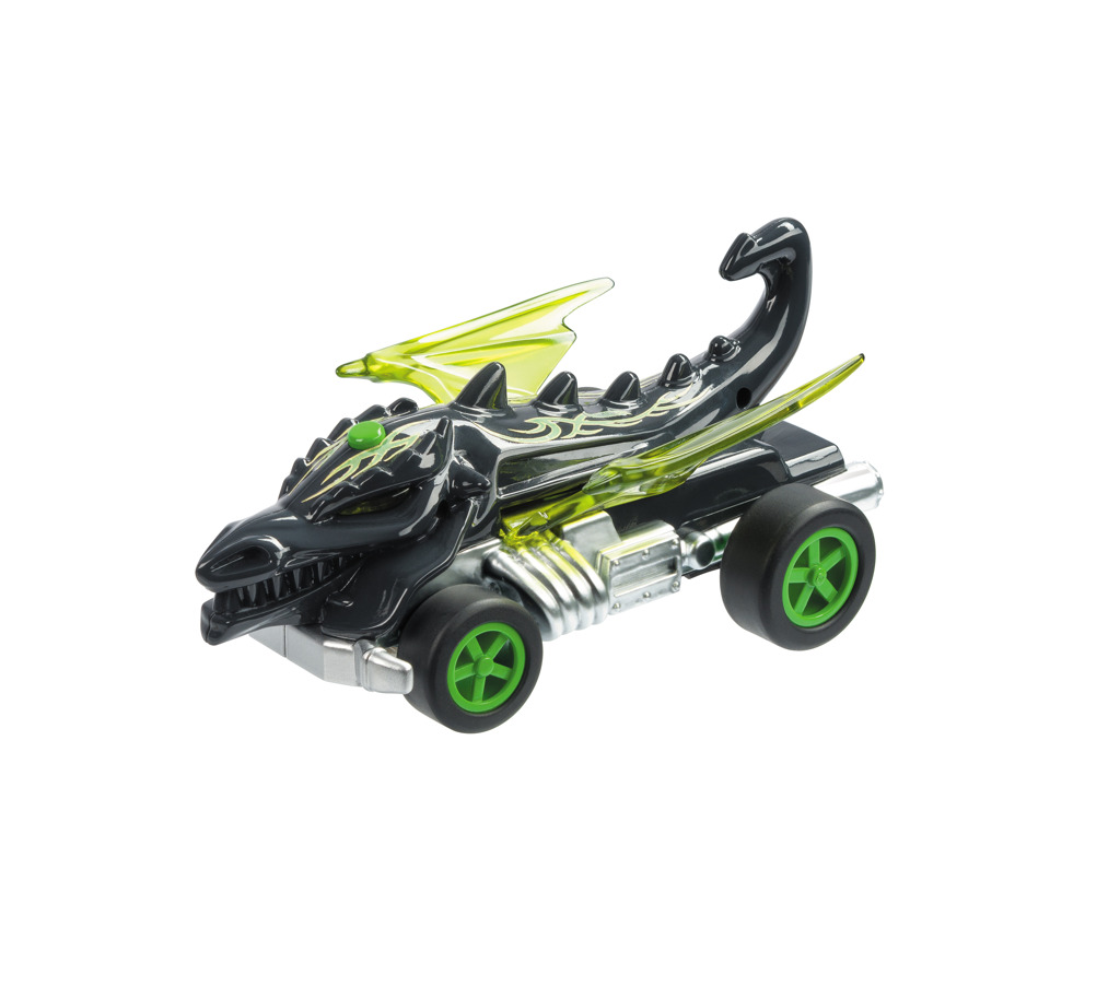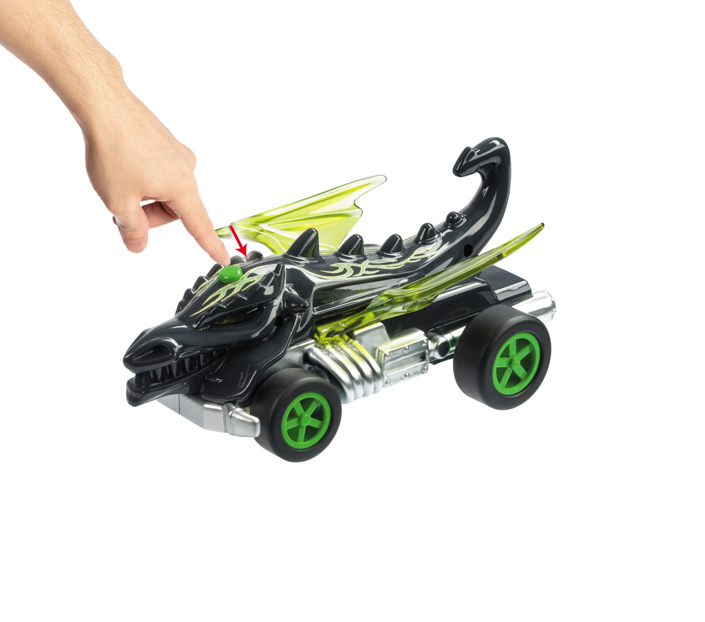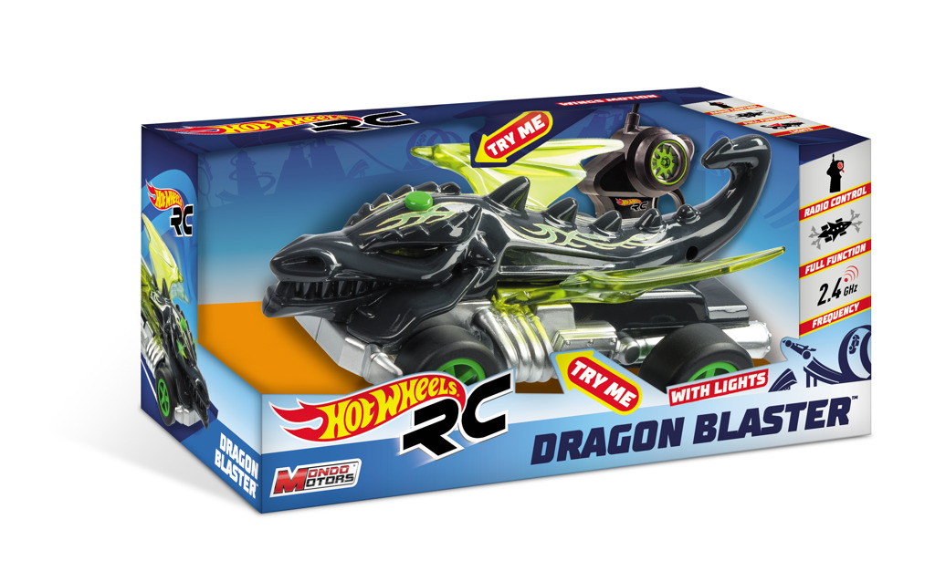 - RC auto (1:24) Hot Wheels ve tvaru draka. Auto svítí a hýbe křídly. Určeno pro děti od 3 let. Auto vyžaduje 3× AA baterie (jsou součástí balení a dálkové ovládání 2× AA baterie (nejsou součástí balení).